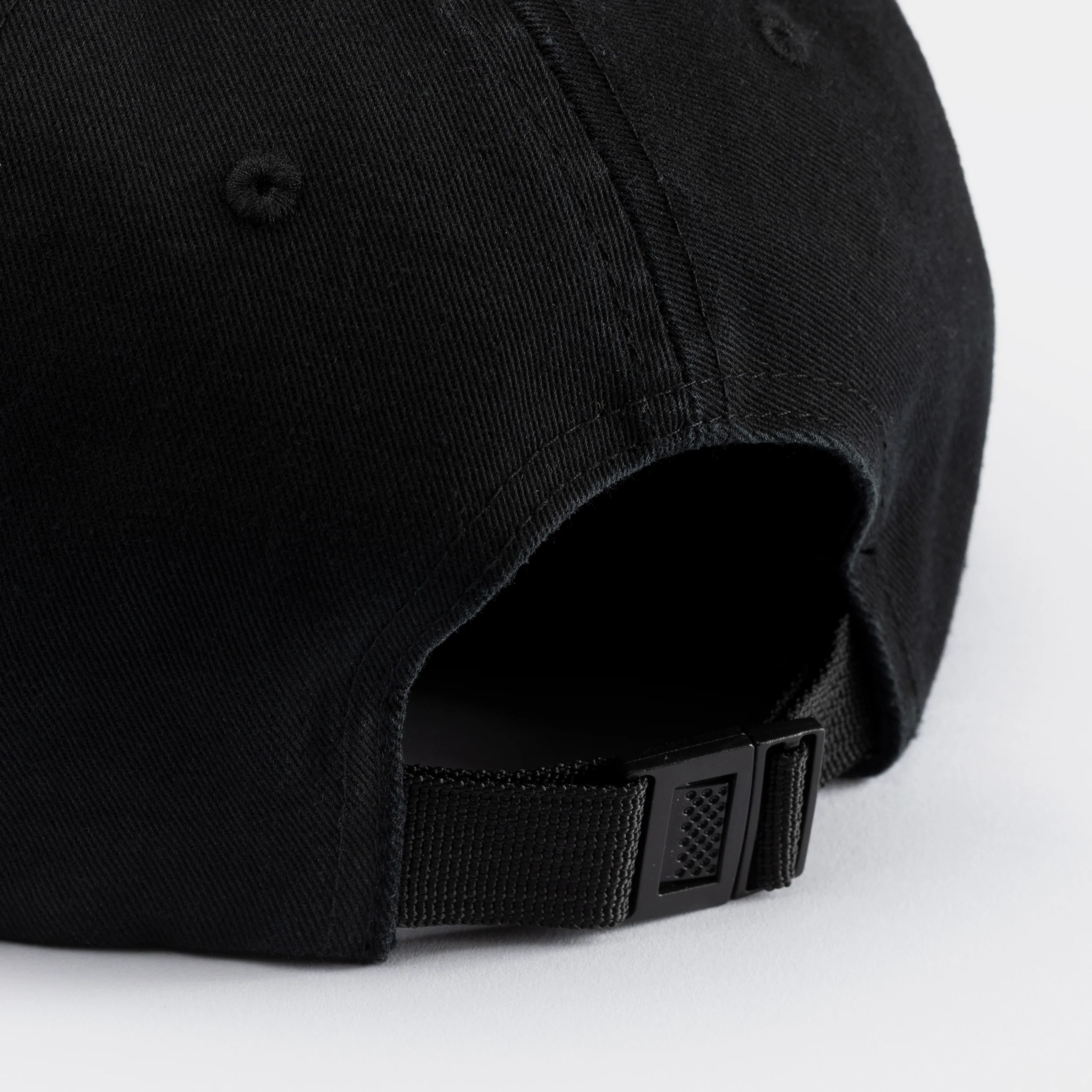 Black cotton six-panel strapback hat with pink and orange embroidery, available exclusively in the A24 Shop.