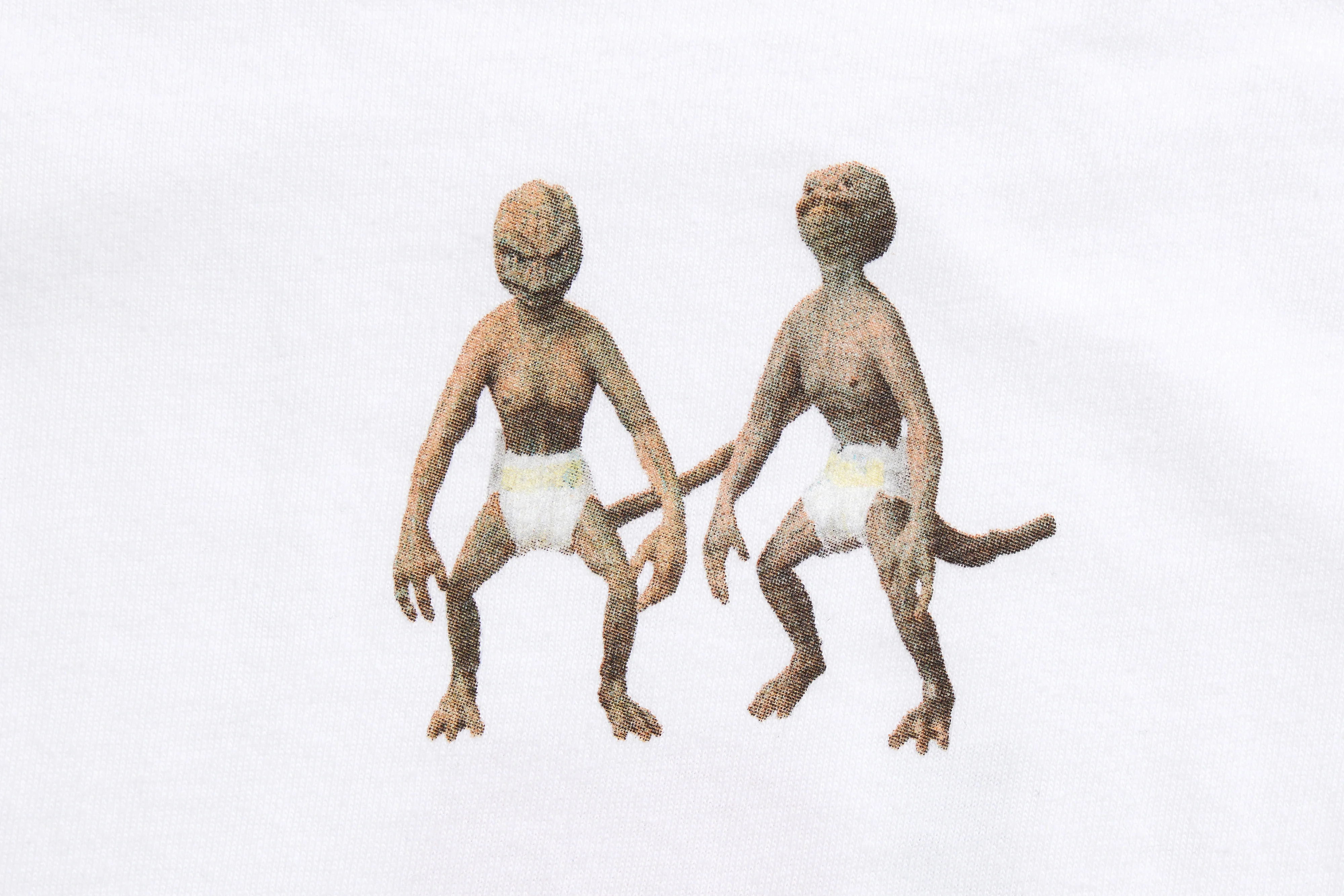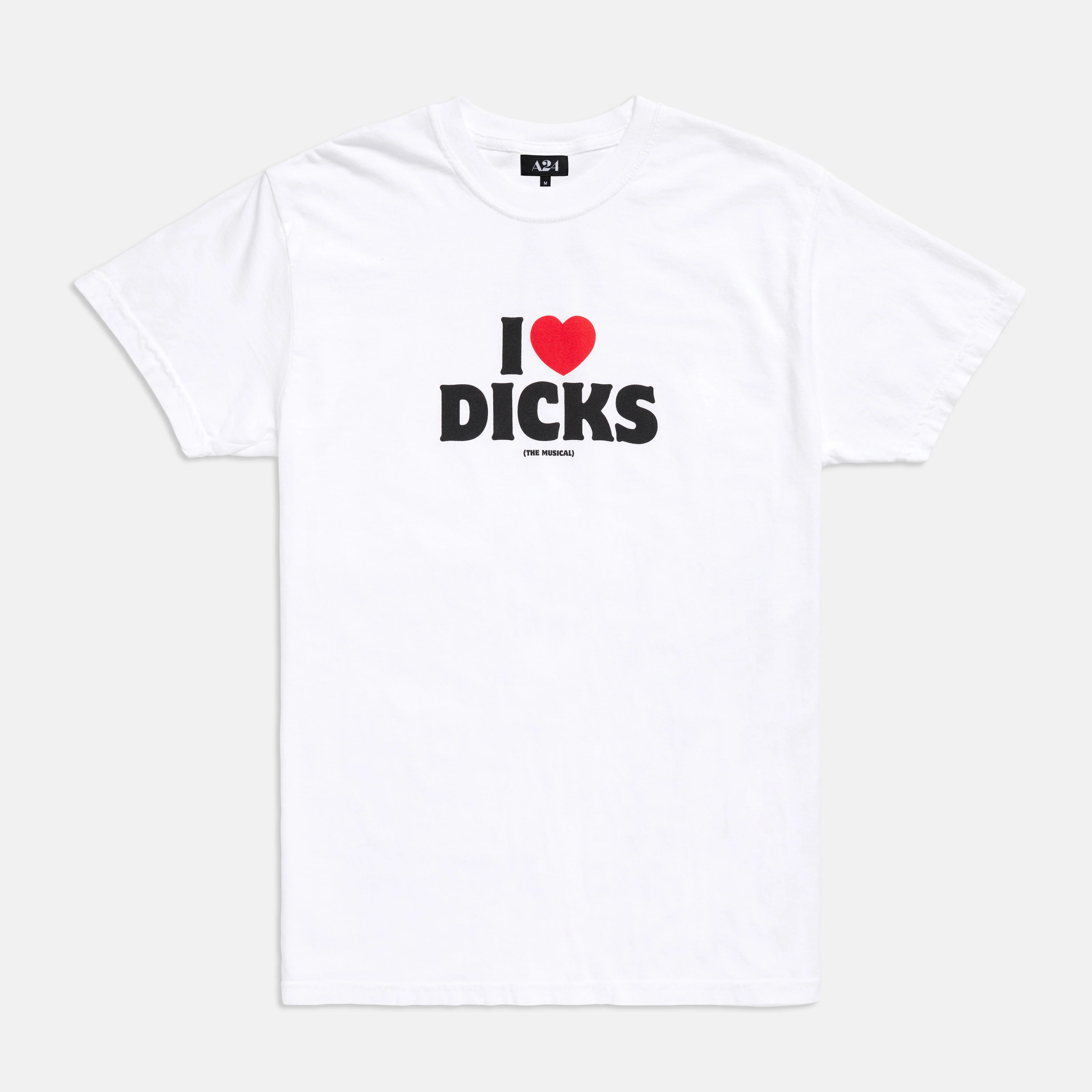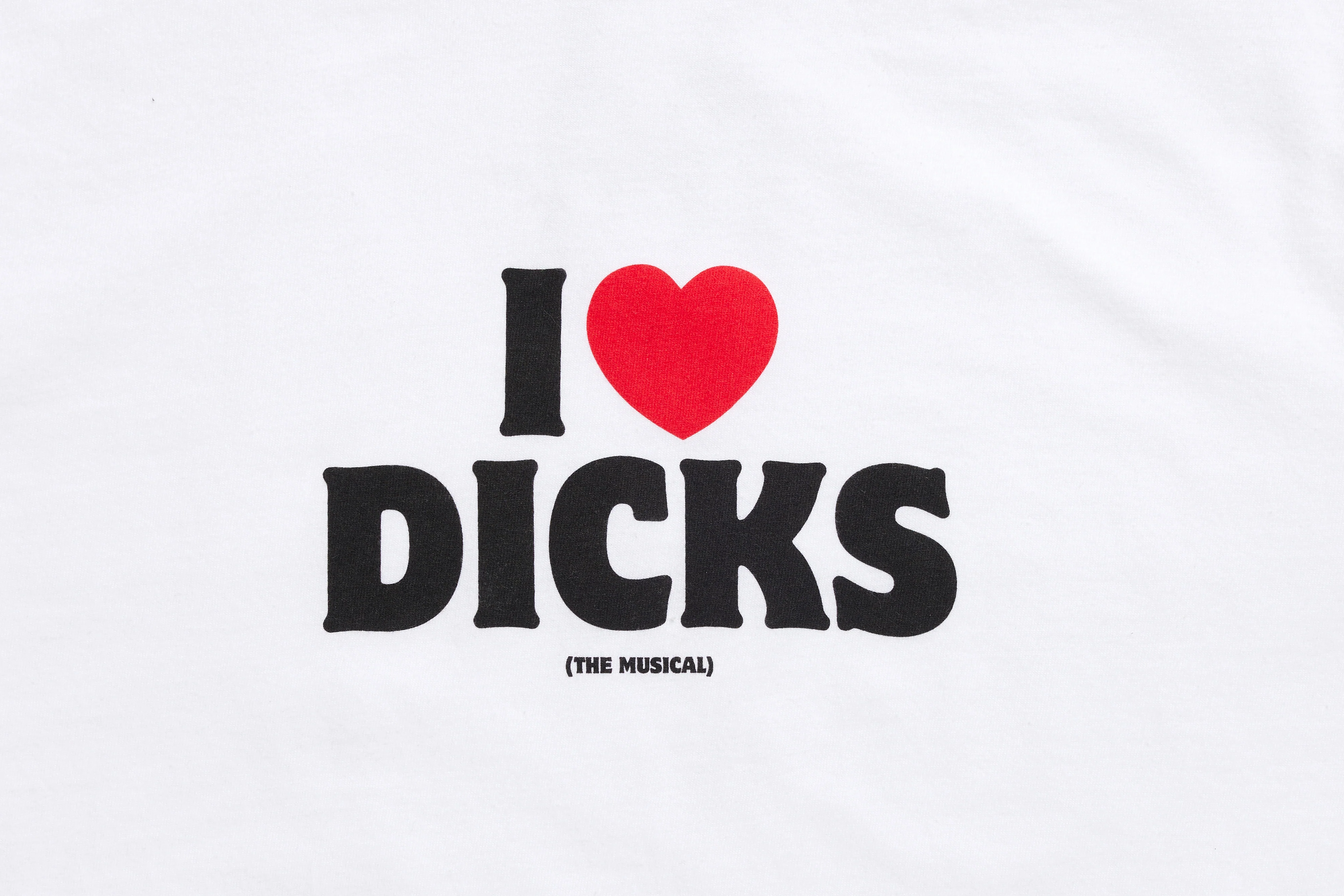 Limited edition white cotton t-shirt for Dicks: The Musical. Screen printed text on front and sewer boys image on back.