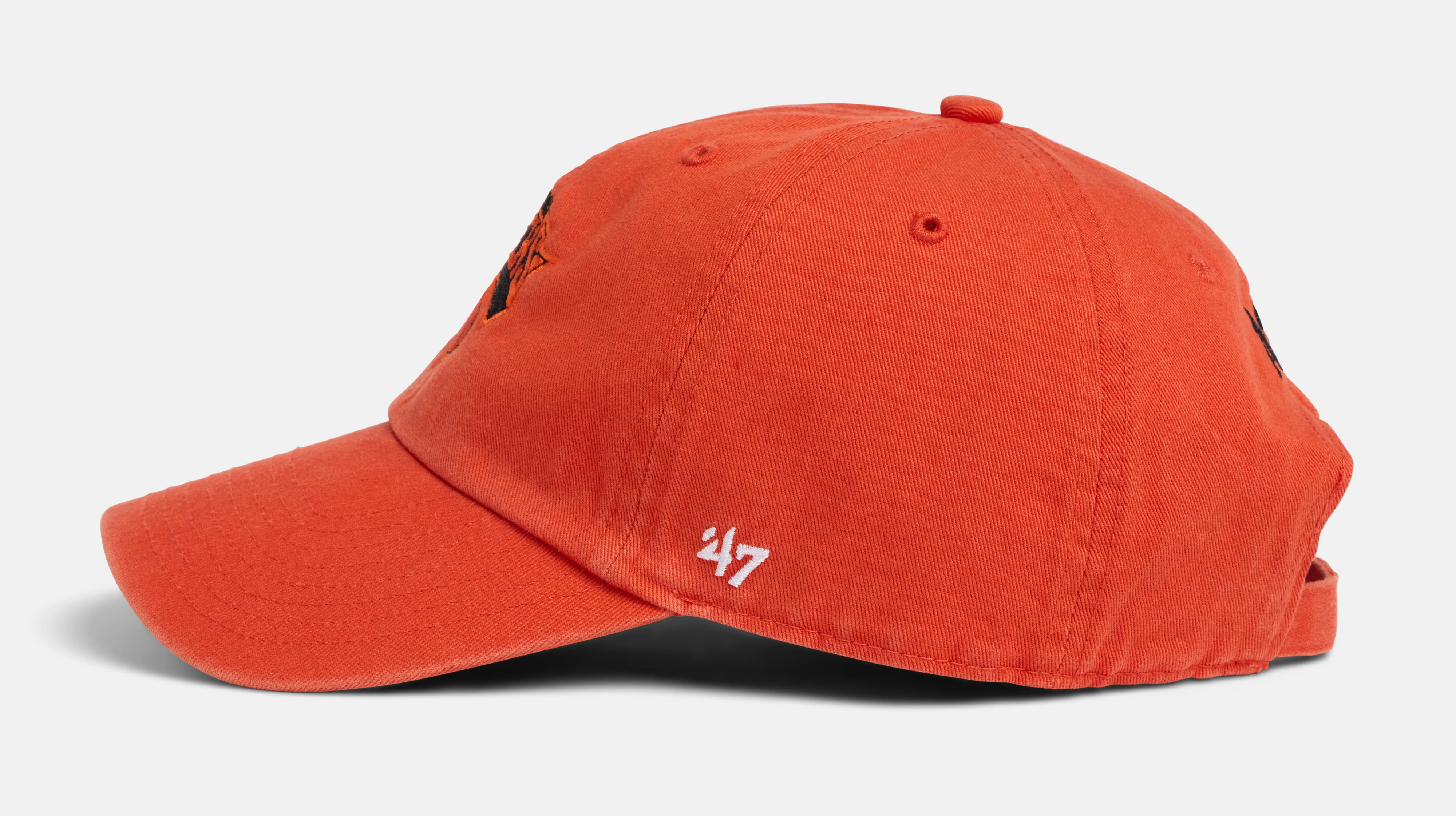 Orange ’47 Clean Up Knicks cap. Embroidered on front, back and sides. Relaxed fit, cotton twill.