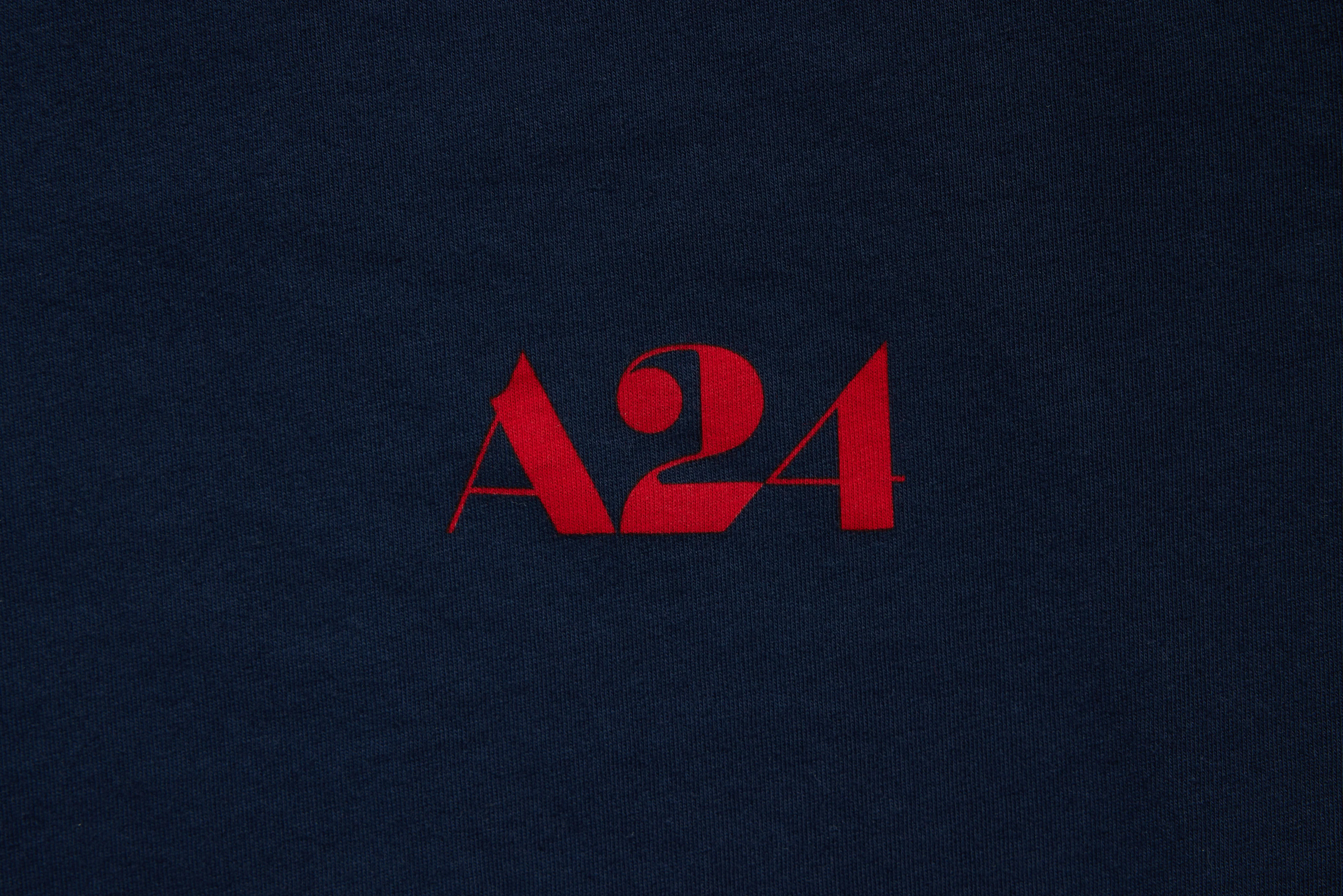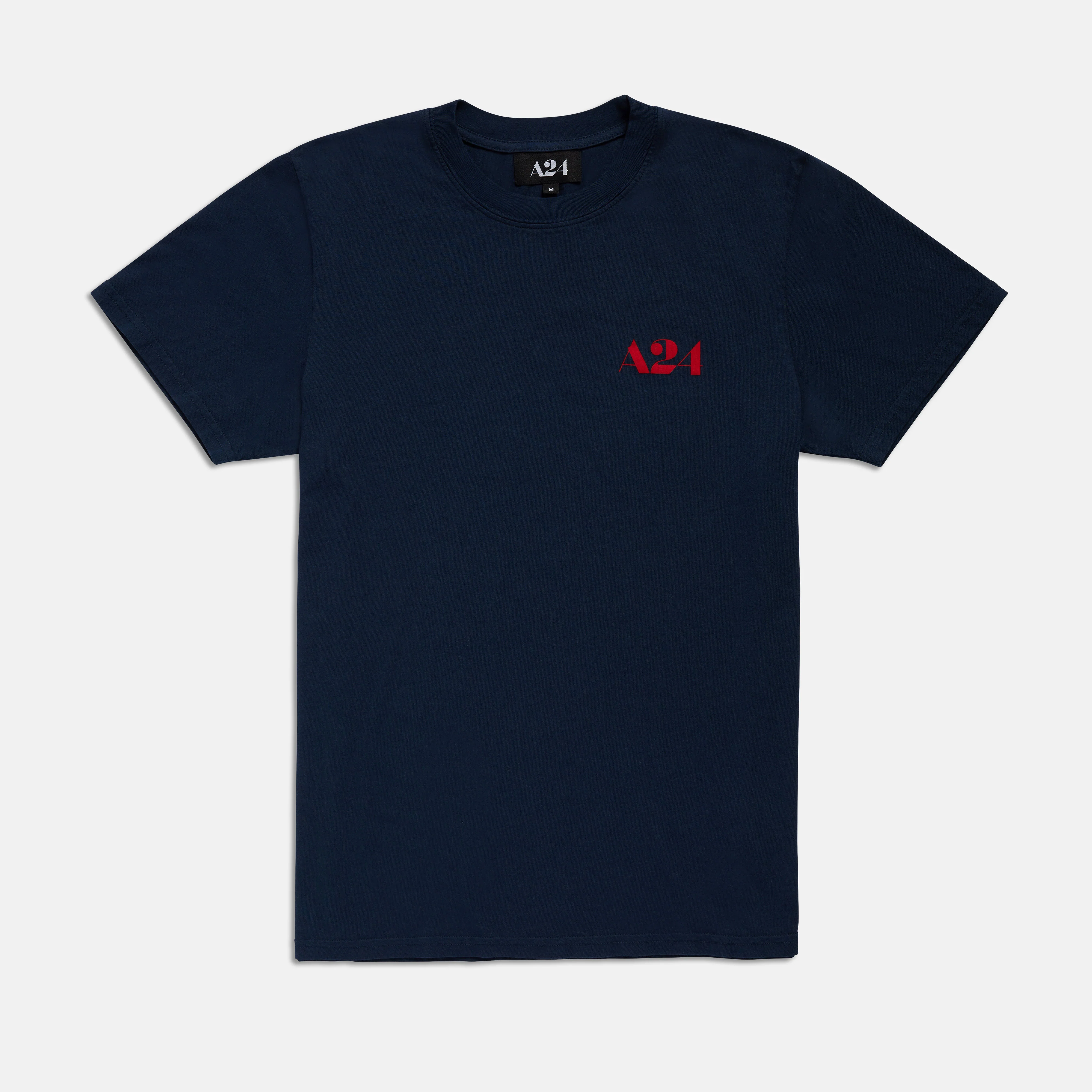 Soft cotton blend cut-and-sew t-shirt in navyĀ blue.Ā Red logo on left chest and A24 woven label inside.Ā Fits true-to-size.