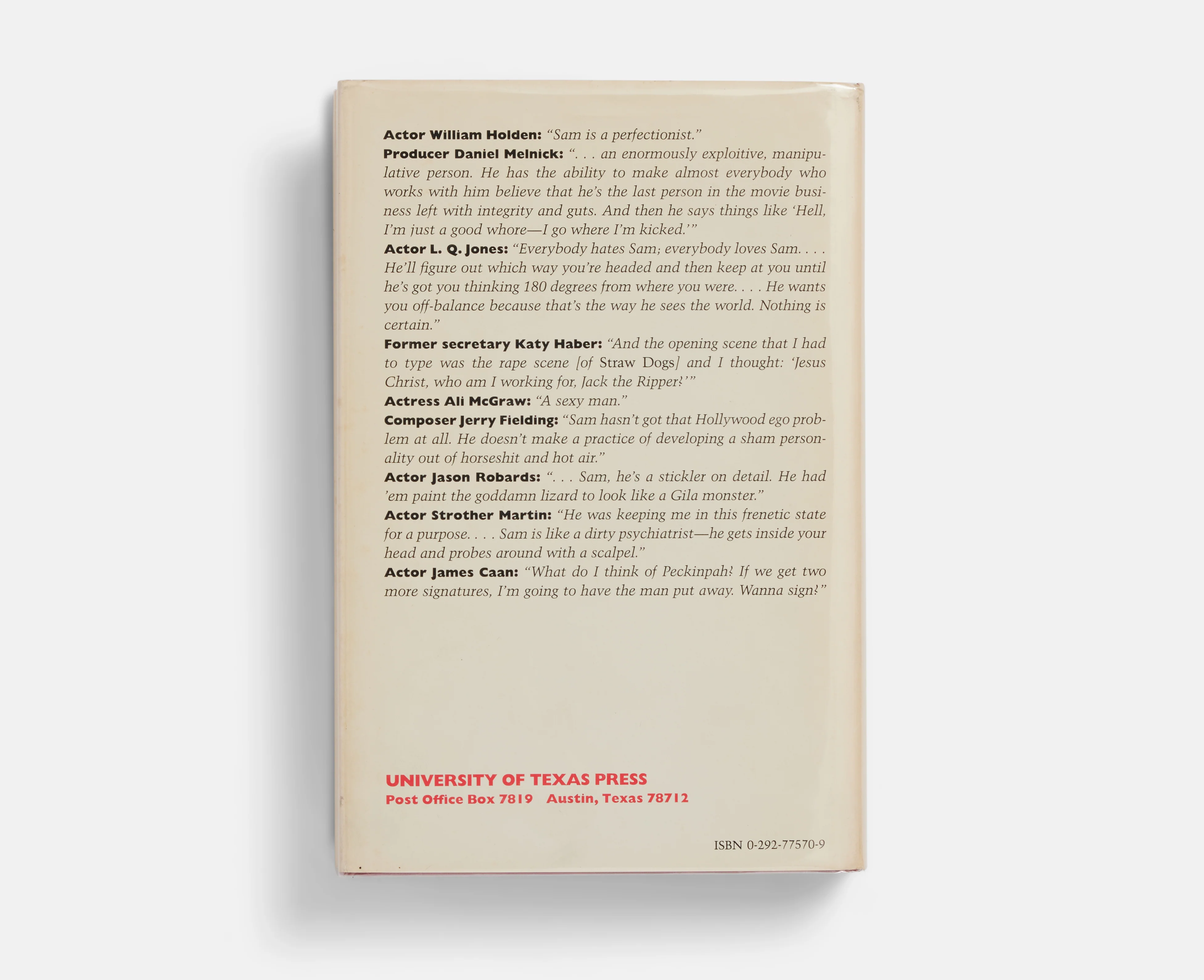 Hardcover signed first edition of Garner Simmons's 1982 biography of director Sam Peckinpah. Excellent used condition.