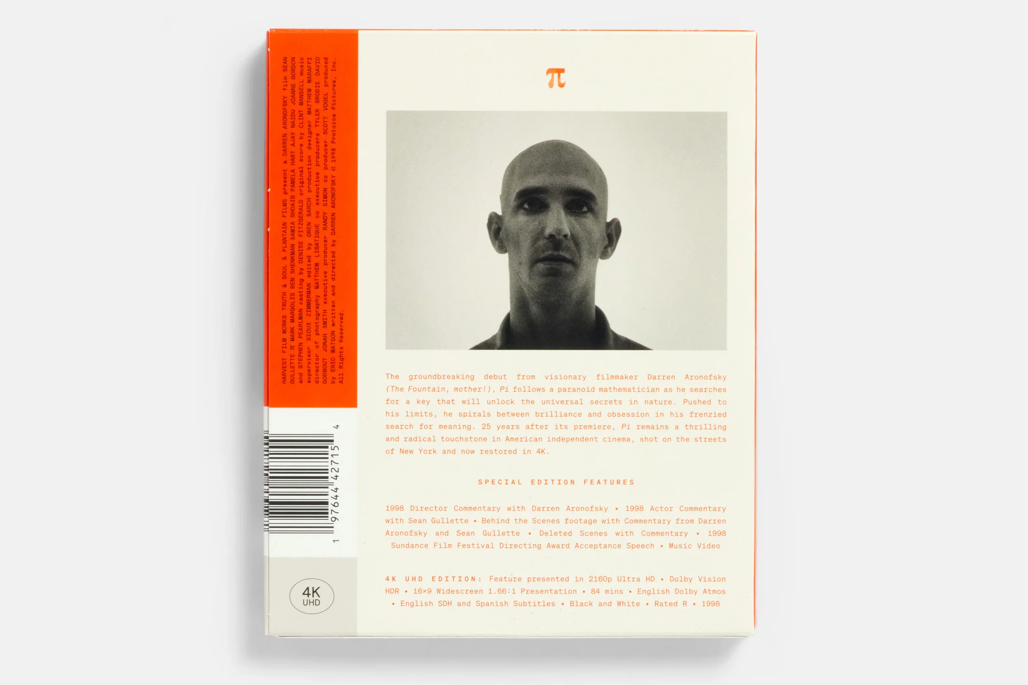 25th Anniversary special Blu-ray and 4K edition of Darren Aronofsky’s debut feature Pi starring Sean Gullette, originally released in 1998 and newly restored in 4K.
