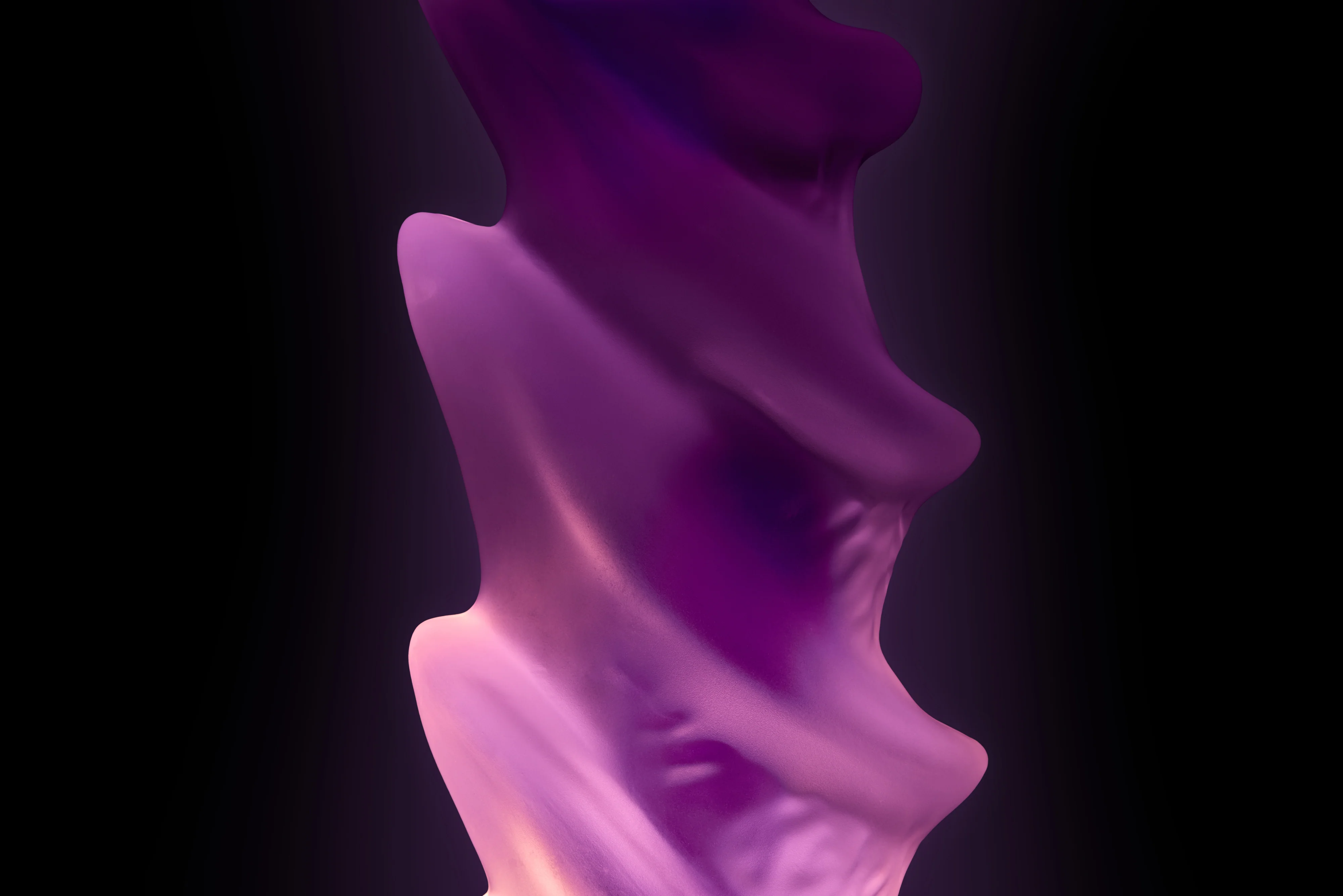 Oversized glass unicorn horn filled with glowing purple liquid.